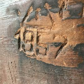 Bellissime le incisioni dei marchi vari e i rivetti in ferro agli angoli inferiori.
