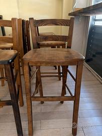 Vendo 30 sgabelli alti in legno in blocco 450€ o singoli 20€ piu tavolo alto € 80 per locali e bar.