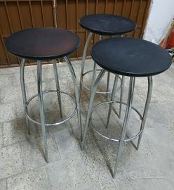 Sgabelli con struttura tubolare in metallo e seduta plastica.