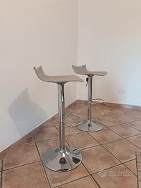 Coppia di sgabelli moderni colore tortora, usati pochissimo con penisola. Vendo per cambio casa. Sistema sali scendi perfettamente funzionante.