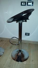 Vendo due sgabelli per bar o per cucine moderne, seduta colore fumè semitrasparente, pistoni saliscendi perfettamente funzionanti, base di appoggio a terra eventualmente da lucidare.