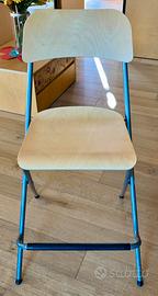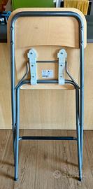 Questo è uno dei due sgabelli da bar pieghevoli IKEA Franklin con schienale, caratterizzato da una seduta e uno schienale in multistrato di betulla e una struttura in acciaio grigio.