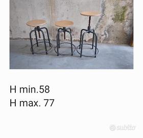 Vecchi sgabelli officina regolabili in altezza, misure vedi in foto. Euro 100 cadauno. Possibile spedizione. Per info 347 759 6735