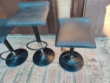 m.3 sgabelli in acciaio con altezza regolabile seduta in legno e rifatta copertura dal mobiliere
