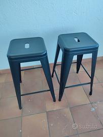Coppia di sgabelli alti in ferro nero, dallo stile industriale, ispirati al celebre design Tolix (modello “H” francese anni ’30). Solidi, comodi e impilabili, perfetti per penisola, cucina o bancone bar. Verniciatura opaca, design essenziale e contemporaneo. In ottime condizioni, solo minimi segni d’uso.