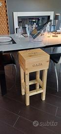 sgabelli, tavolini, realizzati con casse vino, legno trattato con flatting nautico non assorbe non si sporca. la seduta da 2cm conferisce robustezza e solidita' alla struttura. prezzo cadauno