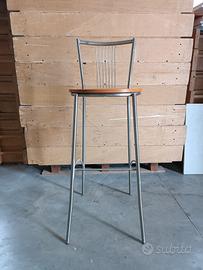 10 Sgabelli tipo bar, struttura in acciaio grigio, seduta in legno rotonda, vendita anche singolarmente, ritiro a mano, prezzo per ogni singolo sgabello.