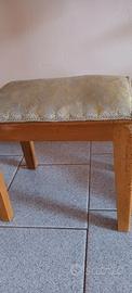 sgabellino vintage in legno anticato chiaro in stoffa damascata altezza cm 35 larghezza 42 profondità 29