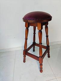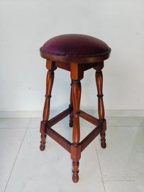 sgabello alto in stile inglese in legno con seduta fo foderata eco pelle bordeaux altezza 80 cm