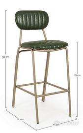 N 2 Sgabello Bizzotto Addy verde inglese struttura in acciaio verniciato a polvere epossidica, rivestimento in ecopelle - schienale