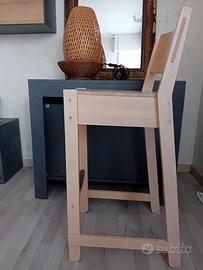 Vendo sgabello IKEA alto stile bar in legno chiaro, robusto e stabile, perfetto per cucina, isola o tavolo alto.