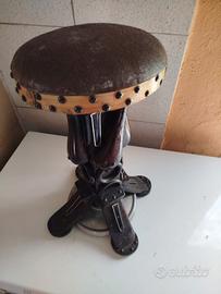 vendo sgabello antico in legno con inserti in metallo ,molto bello!