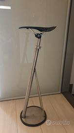 Sgabello artigianale di design stile biciletta inox, perfetto per esposizioni e arredo.