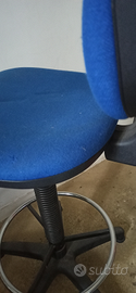 Occasione , comodissimo e utile Sgabello da bancone , da lavoro , professionale , adatto anche per estetista , con schienale regolabile e flessibile che si adatta attivamente ai movimenti + seduta , entrambi imbottiti , sollevamento con pompa a gas , rivestimento in tessuto resistente , anello poggiapiedi cromato regolabile in altezza , misure ingombro l.45 - prof 55 - altezza regolabile da 55 a 83 cm , diam anello 42 ( mis . schienale 40x42) ingombro gambe diam 63 cm , buono stato , altre foto ( + trasporto ) a richiesta .