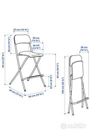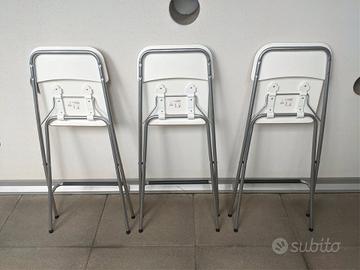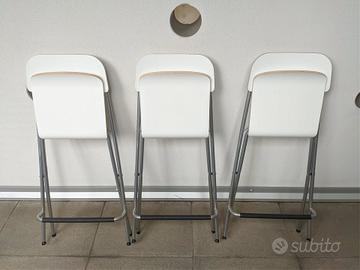 Sgabello da bar pieghevole con schienale, bianco, altezza seduta da terra 63 cm. I piedini in plastica donano stabilità alla sedia e riducono il rischio che si formino segni sul pavimento. Il blocco di sicurezza integrato evita che la sedia si chiuda accidentalmente. Sedile e schienale realizzati in multistrato di impiallacciatura di legno, laminati di bianco. Struttura tubolare in acciaio cromato.
