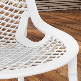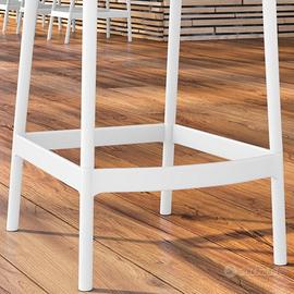 Sgabello nuovo con struttura in polipropilene rinforzato con fibra di vetro in colore bianco con seduta a forma di conchiglia, utilizzabile sia per interno che per esterno.