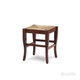 Sgabello nuovo con poggiapiedi modello ARTE POVERA in legno di faggio con sedile in legno oppure in paglia ( vedi le varie foto )