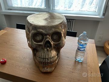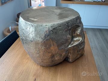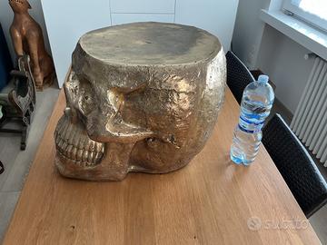 Vendo uno sgabello o comodino di design a forma di teschio colore oro.