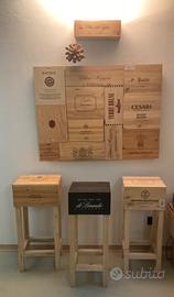 Sgabello con casse di Vino in legno