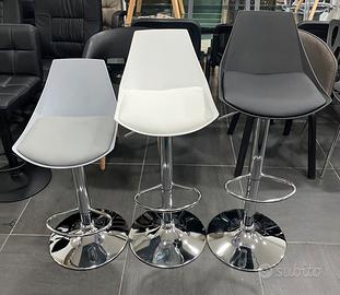 Sgabello con struttura cromata e cuscinetto imbottito e rivestito in ecopelle. Dotato di alzata a gas regolabile.