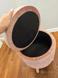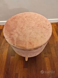 Elegante sgabello contenitore tondo con gambe in legno. Effetto velluto. Colori rosa cipria (non rende in foto). Come nuovo. Zona Padova Est, consegna a mano.