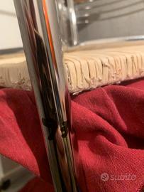 Sgabello cromato co rivestimento in paglia in ottime condizioni le misure sono scritte vicino alle gambe con pennelli nero 60
