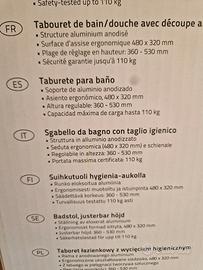 Sgabello da bagno con taglio igenico usato per un mese, praticamente nuovo, perfetto per persone con poca mobilità.
