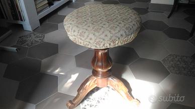 antico sgabello girevole da pianoforte in noce intagliato, ottimo stato