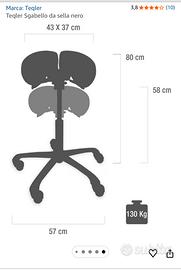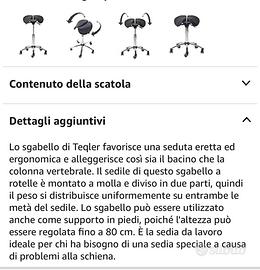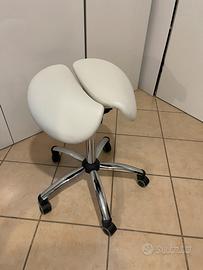 Vendo sgabello da sella marca Teqler, ergonomico per scaricare la schiena. In similpelle bianca, come nuovo, usato pochiasimo in ambito familiare. Informazioni tecniche nelle fotoe. Su google.