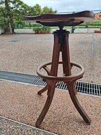 Antico sgabello da tipografo del 1930 in legno e ghisa. Ha un meccanismo per bloccare l'altezza della seduta. BELLISSIMO
