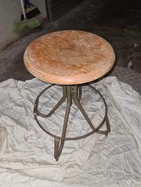 Sgabello da ufficio anni '50 regolabile in altezza in buone condizioni e perfettamente funzionante. Seduta in legno e struttura in metallo. Lo sgabello si regola in altezza girando il piano rotondo della seduta. Va da un minimo di 58 cm ad un massimo di 70 cm di altezza.