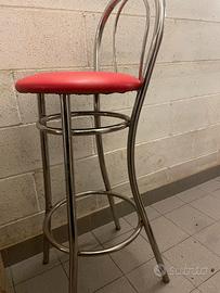 sgabello seduta per penisole da cucina, bar , pub, e dove si vuole. colore con seduta in pelle rossa , poggia schiena e piedi di stabilità in acciaio. da lucidare , conservati al coperto ,misure illustrate nella foto. sono 4 pezzi.