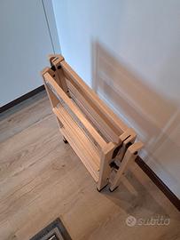 sgabello Made in Italy con un'ampia pedana, gradini antiscivolo e piedini stabilizzatori antisdrucciolo. Chiuso resta in piedi da solo, occupando pochissimo spazio: solo 11,5 centimetri!