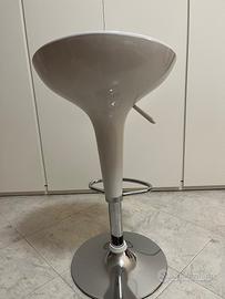Vendo sgabello girevole, in plastica, con base cromata, con poggiapiedi, regolabile in altezza max 90cm, colore bianco, utilizzabile in cucina o bar. In ottime condizioni, usato poco.