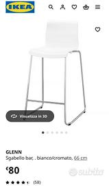 Sgabello IKEA GLENN – 65/66 cm – Bianco/Cromato