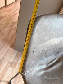 Sgabello fisso imbottito in ecopelle grigio, con seduta comoda per la la sua spalliera.