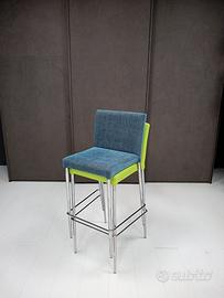 Sgabello impilabile mod. ZIP in metallo cromato lucido e sedile/schienale rivestito.