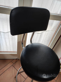 Sgabello in acciaio con morbida seduta in pelle di altezza 75cm. Schienale in pelle, con piccola imperfezione estetica (vedi ultima foto). Vendo per inutilizzo