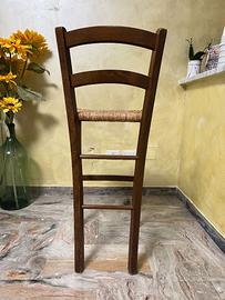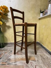 Vendo n. 1 sgabello in legno con seduta in paglia in noce scuro, h=73 cm.