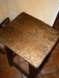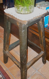 Sgabello in legno da lavoro anni 40-50 proveniente da banco di lavoro di una officina meccanica . ideale x portafiori o altro in arredo opportuno.necessita trattamento antitarlo e conservativo .