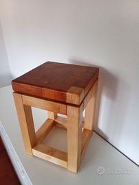 Vendo sgabello in legno massello, realizzato a mano con una combinazione di ciliegio e acero, due essenze pregiate che donano eleganza e resistenza. Ideale come seduta, tavolino d’appoggio o complemento d’arredo, perfetto per casa, studio o negozio.