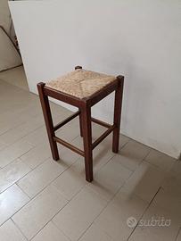 Sgabello di legno, seduta di paglia Altezza 70 cm Seduta 30x30 cm Usato pochissimo
