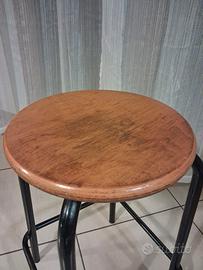 Sgabello industriale vintage, anni 70, normali segni del tempo sulla seduta e sul poggiapiedi