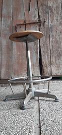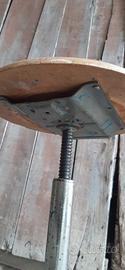 Sgabello vintage in stile industriale in legno e metallo. Altezza regolabile.