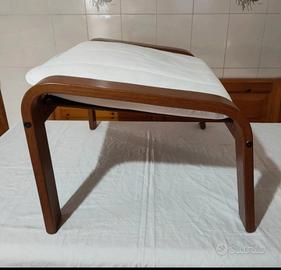 Bellissimo sgabello in legno stile anni 70 , particolare la forma , con cuscino imbottito che si stacca, sfoderabile , e si attacca con strech . Ottime condizioni .