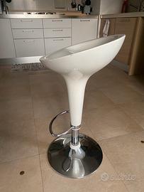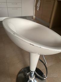 Vendo sgabello moderno bianco laccato, regolabile in altezza, con poggiapiedi cromato e base stabile.