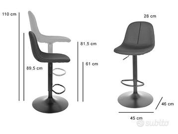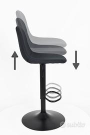 Questo sgabello è girevole e grazie alla funzionalità di altezza regolabile, può essere adattato per diverse situazioni e utilizzi.