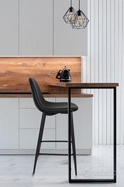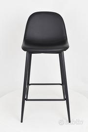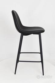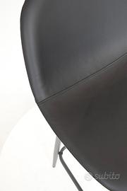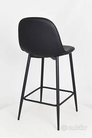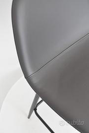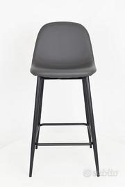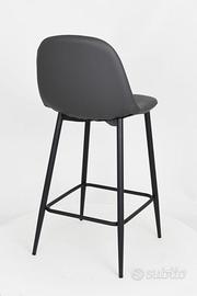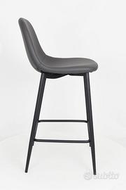 Sgabello nuovo imbottito e rivestito in finta pelle disponibile in due varianti di colore (grigio scuro, nero) con gambe in acciaio verniciato nero opaco e piedini piatti.