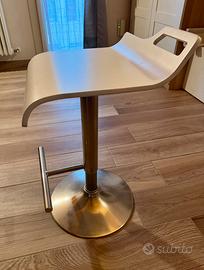 Sgabello girevole a 360 gradi, regolabile in altezza (da 50cm a 80cm in altezza) grazie a comoda levetta. Seduta in legno e base in metallo satinato. Condizioni perfette