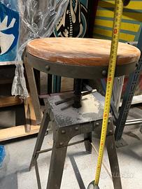 Sgabello per flipper o videogioco realizzato in metallo con componenti uniti con ribattini.